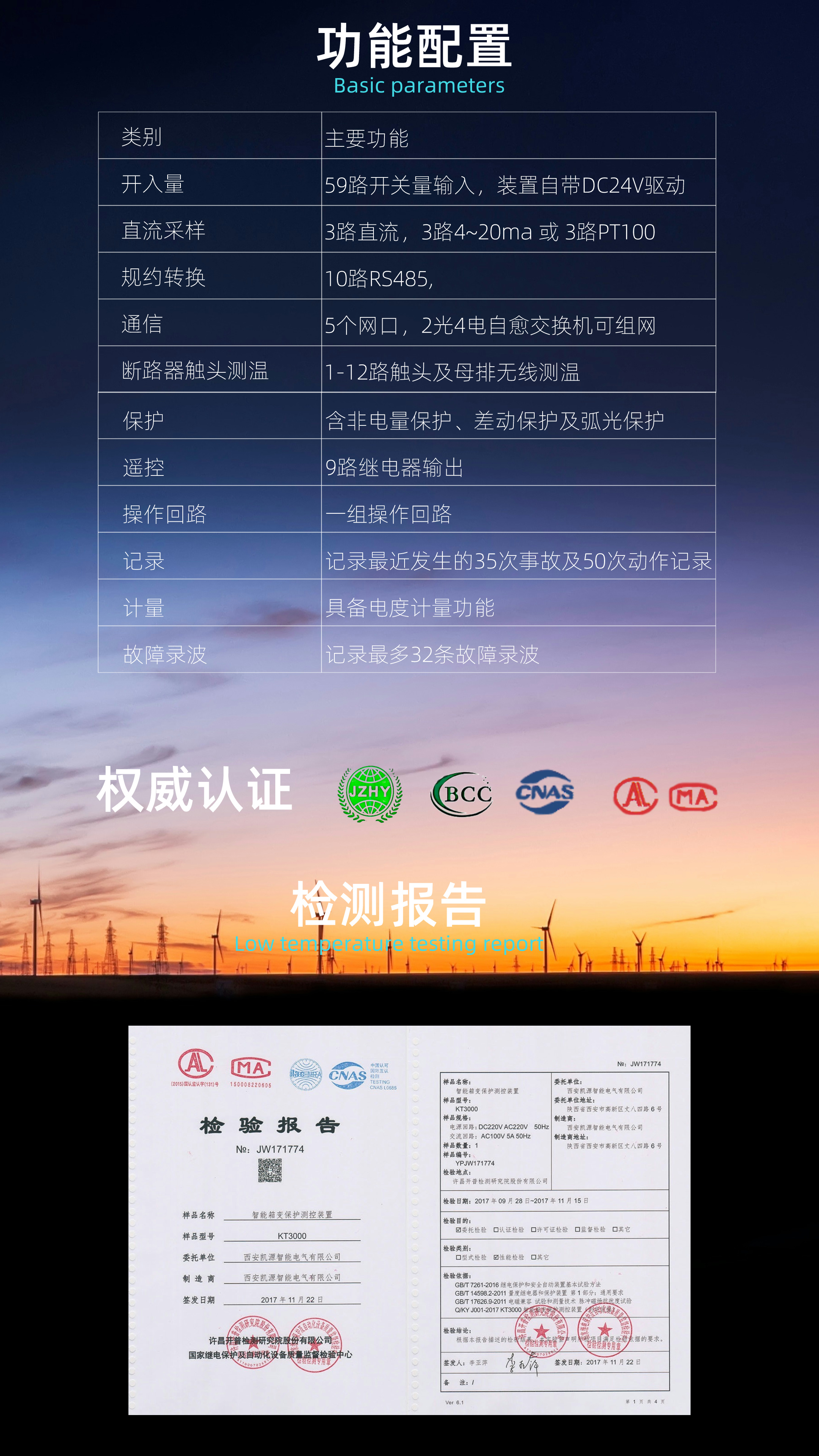 西安凯源智能电气KT3320TD风电箱变测控装置